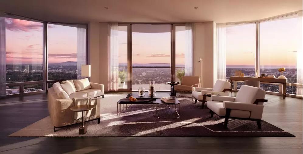 世纪广场的双塔名邸重新诠释了洛杉矶的豪华生活。供车辆进出的大门后,是一排停车门廊和厅堂空间,严谨的设计师和专业人员确保这里的舒适与便利。继续往里走,每套双塔寓所都采用无立柱的灵活空间,选用精心打造的饰面建材,以此在热情的开放感和茧一样的隐秘舒适之间达到平衡。
